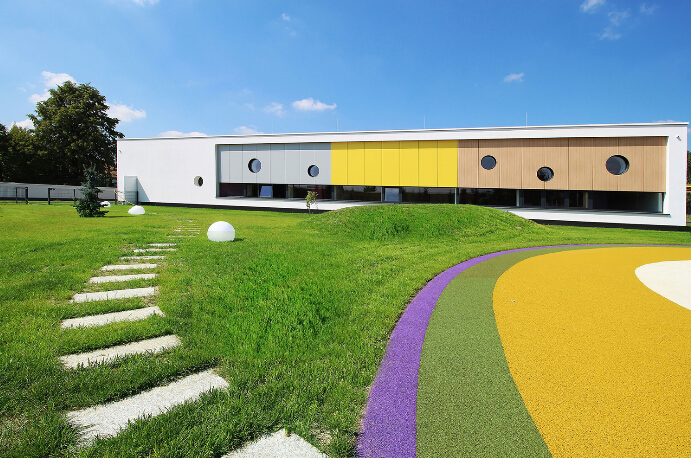 瑞士斯塔比奧在一片美麗的綠地上,佇立著斯塔比奧幼兒園,通過(guò)道路和橫墻將新樓和景觀連接起來(lái),去為項(xiàng)目地......