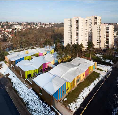 Epinay幼兒園在法國巴黎附近一個名叫埃皮奈蘇塞納爾的小鎮(zhèn),幼兒園附近坐落的都是上世紀(jì)七十年代的經(jīng)典建筑......