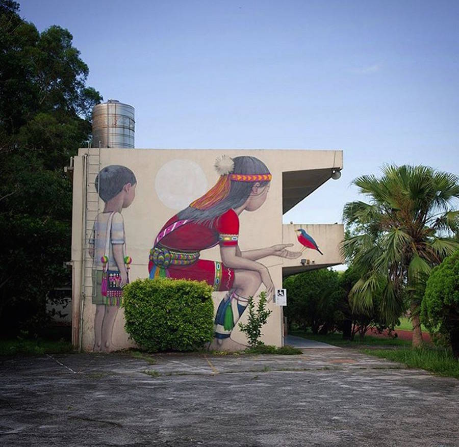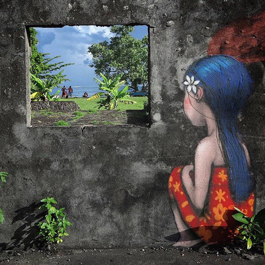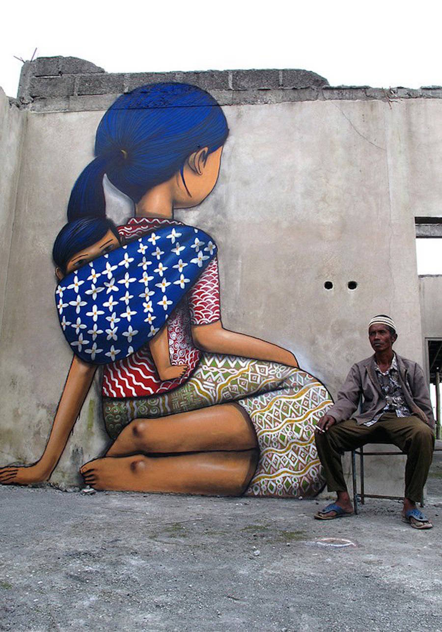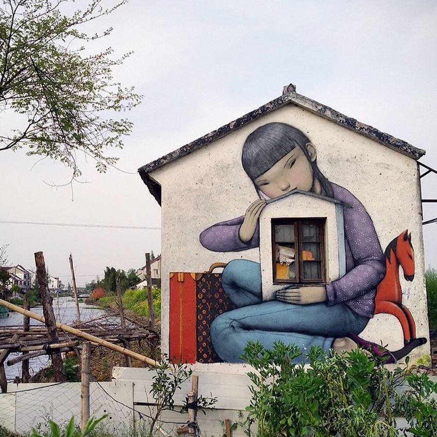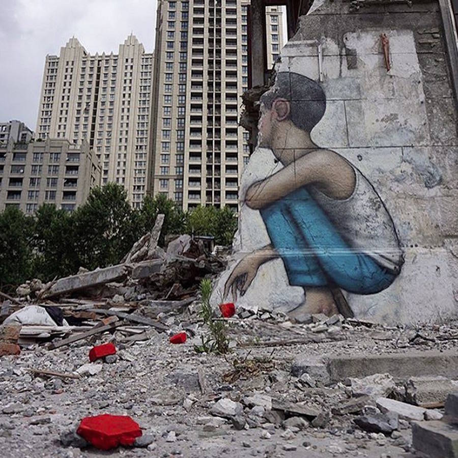 國際知名的法國巴黎街頭藝術(shù)家Julien Seth Malland(又名Seth Globepainter),Julien Set Malland的作品通常包含著憂郁的兒童和彩虹這兩個元素。作品所展示的畫面,觸動視覺。他們背對著大眾,背對著整個城市,注意力完全被艷麗的色彩所吸引,直至融入其中,不為所動。