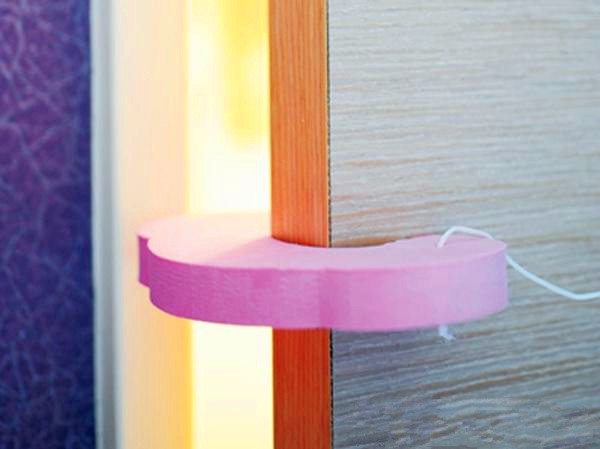 小孩經(jīng)常出現(xiàn)被門夾到的意外,因此門板上裝了防夾裝置,透過海綿緩沖,門不會一下就大力關(guān)上。