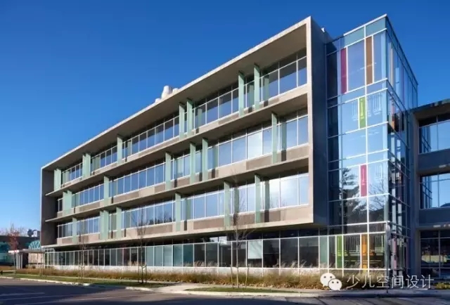 這是一個(gè)擴(kuò)建項(xiàng)目,新舊元素被整合,并裝點(diǎn)上一致,跳躍的彩色玻璃達(dá)到統(tǒng)一。與以往的安裝方式不同,有一部分彩色玻璃側(cè)安在墻上,就像樓房上的豎向廣告牌一樣。玻璃在與陽(yáng)光的舞蹈中,給建筑帶來(lái)變化,有趣的色彩板塊。兒童與家庭研究中心位于兒童與婦女健康研究中心的46英畝校園內(nèi)。各方面皆是加拿大西部規(guī)模最大研究院,研究院同時(shí)還涉足其它臨床研究領(lǐng)域,具有動(dòng)物保健設(shè)施,商店設(shè)施,教育中心等其它功能。該項(xiàng)目是一個(gè)擴(kuò)建,與原有建筑整合后,面積達(dá)到了11924平方米。