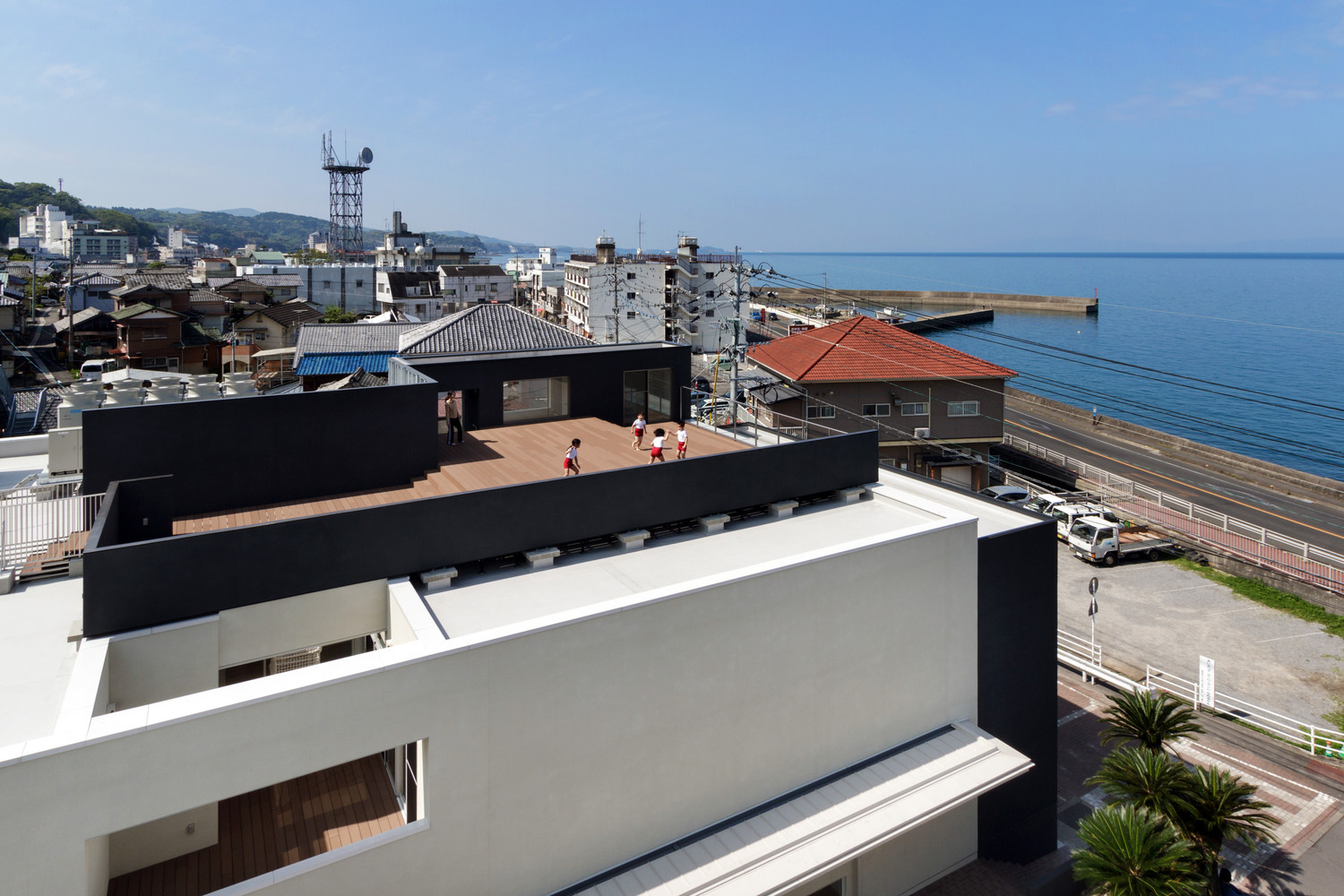 在日本長崎縣有一所幼兒園,就像海子的詩(面朝大海春暖花開)一樣,是一座面朝大海的建筑,這個(gè)幼兒園建于里亞式海岸旁。一望無際的海面向南方蔓延,在幼兒園樓頂上看向大海的南方有座山,這是一座能使人們感受到大自然神奇的創(chuàng)造力秀麗山峰。幼兒園的建筑高12m,室內(nèi)寬敞明亮設(shè)計(jì)師充分利用臺(tái)階的優(yōu)勢,解決兒童因身高限制而無法觸到和看到的高度問題。該建筑布局和流程圖是根據(jù)交通和兒童保育計(jì)劃特別設(shè)計(jì)的。