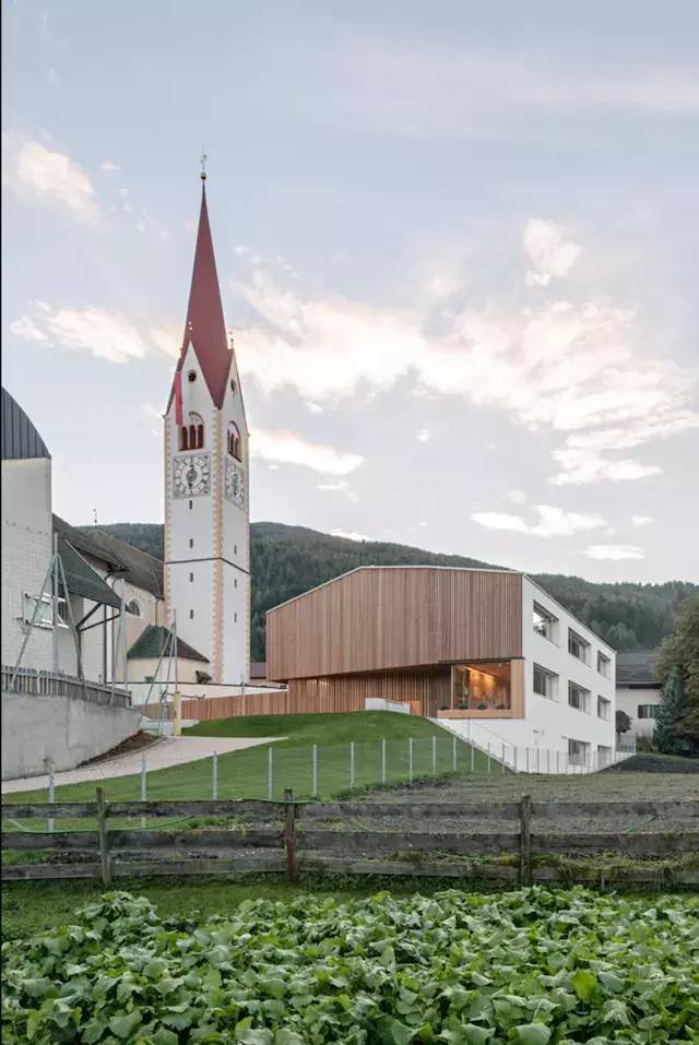 位于意大利北部博爾扎諾自治省一個(gè)四面環(huán)山的安靜小鎮(zhèn)。這里有著深紅色尖頂?shù)慕烫?,是小?zhèn)中最醒目的建筑。其他的建筑基本上都是粉飾一新的白墻搭配深色的屋瓦,隨意的坐落在鄉(xiāng)間小道邊。小鎮(zhèn)上有好幾棟年代稍久的房子,墻面用木板裝飾充滿韻味十分古樸。