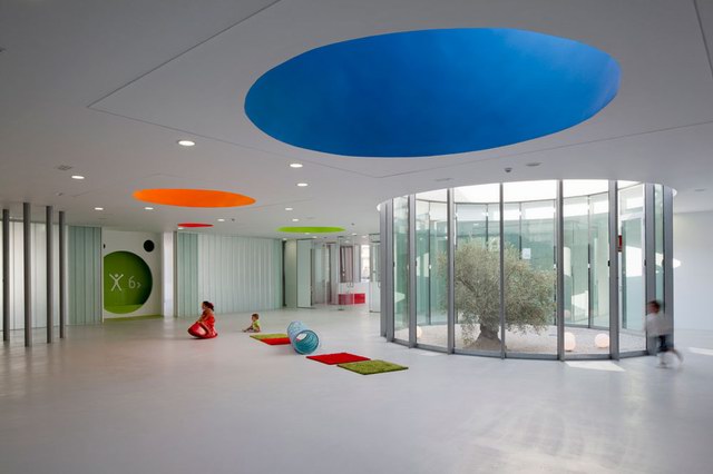 看到這個幼兒園就會讓人想起Lewis Carroll的那本著名童話故事《愛麗絲奇境漫游記》。同樣是把我們帶入一個多種感受的世界,其中融合了幻想與真實、工作與玩耍、樂趣與責任。孩子們眼中的空間,有著與成人相異的感覺、體驗、尺度以及色彩,如果要與成人共處,就很有必要使用雙重尺度,讓每個人都能適應環(huán)境。然而,要適應的不僅有尺度,還有空間的感知特性。因此,我們從建筑的內部開始最基本的思考。