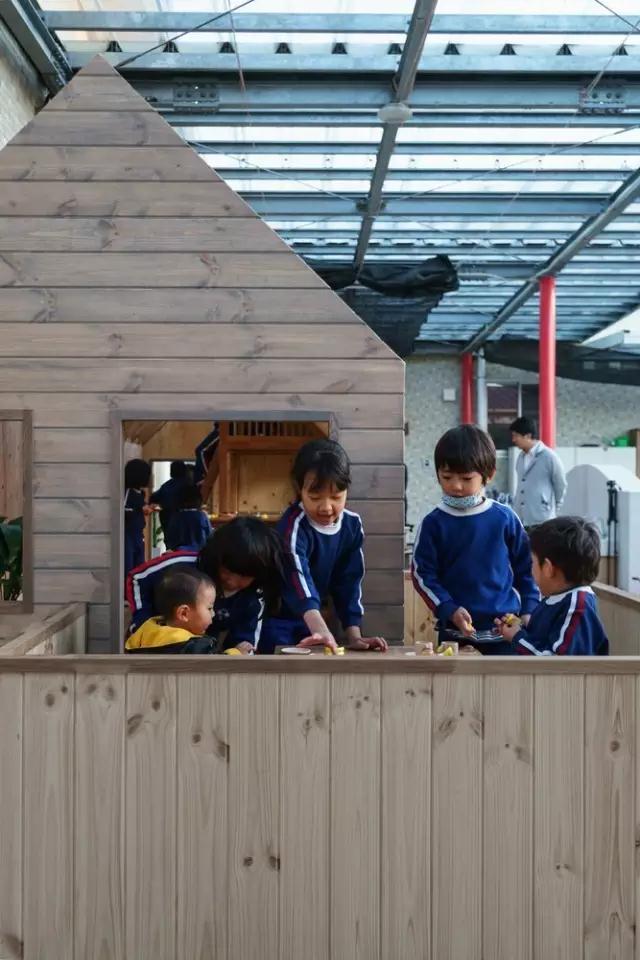 位于日本佐賀縣一所學(xué)校的一個區(qū)域一個僅僅十五平方米占地面積在今年建成,這個是建筑在幼兒園一角的,幼兒園方面希望能夠通過角色扮演來對孩子的創(chuàng)造能力進行更進一步的開發(fā),幼兒園方面邀請了五年前為幼兒園設(shè)計的設(shè)計師進行設(shè)計,設(shè)計師認(rèn)為只有用心打造的區(qū)域才能獲得孩子們的認(rèn)同。