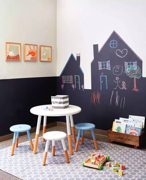 在房間做一面黑板墻,讓孩子有一個(gè)專(zhuān)門(mén)亂涂亂畫(huà)的位置,充分發(fā)揮潛能,激發(fā)創(chuàng)造性,不用再跟在孩子屁股后面擦墻洗磚我們可以通過(guò)學(xué)習(xí)收納整理培養(yǎng)孩子的自理能力。幫孩子把物品分類(lèi),引導(dǎo)孩子把房間里的玩具,圖書(shū)等放進(jìn)不同收納筐里,教育孩子隨手歸位,衣柜也可以定制得矮一些,方便孩子自己整理。