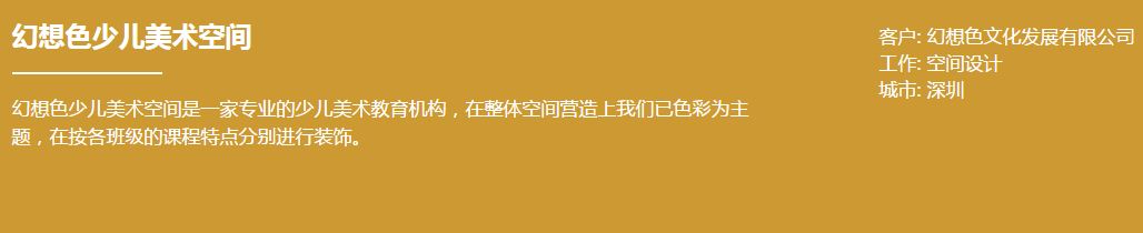 專注少兒空間設(shè)計八年,充滿愛心和創(chuàng)意的少兒空間設(shè)計是我們擅長做的事情.項目遍布全國,為學(xué)校、幼兒園、培訓(xùn)機(jī)構(gòu)、文化機(jī)構(gòu)提供完整空間及平面設(shè)計解決方案,服務(wù)眾多著名品牌,是少兒相關(guān)項目設(shè)計的專業(yè)機(jī)構(gòu)。公司服務(wù)內(nèi)容包括:品牌咨詢、空間設(shè)計、平面設(shè)計、軟裝配飾、施工監(jiān)理。