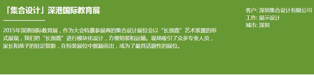 集合設(shè)計(jì)是一家專注于學(xué)校、早期兒童教育、校外培訓(xùn)等教育文化品牌的專業(yè)設(shè)計(jì)公司。電話:0755-22219851/手機(jī):15811828710 Harvey 專注少兒空間設(shè)計(jì)八年,充滿愛心和創(chuàng)意的少兒空間設(shè)計(jì)是我們擅長做的事情.項(xiàng)目遍布全國,為學(xué)校、幼兒園、培訓(xùn)機(jī)構(gòu)、文化機(jī)構(gòu)提供完整空間及平面設(shè)計(jì)解決方案,服務(wù)眾多著名品牌,是少兒相關(guān)項(xiàng)目設(shè)計(jì)的專業(yè)機(jī)構(gòu)。公司服務(wù)內(nèi)容包括:品牌咨詢、空間設(shè)計(jì)、平面設(shè)計(jì)、軟裝配飾、施工監(jiān)理。